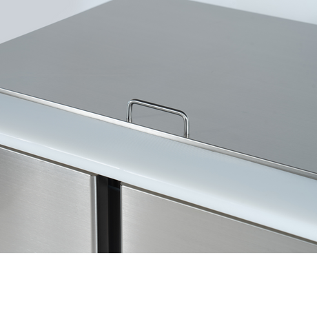 221036 - 2 Door Refrigerated Salad Prep Counter with Stainless Steel Lid and Worktop - 215L (PS200)