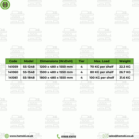 141060 - Stainless Steel 4 Tier Storage Shelving 1500 mm Wide