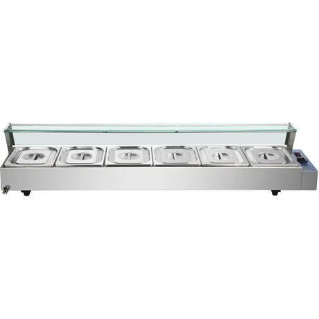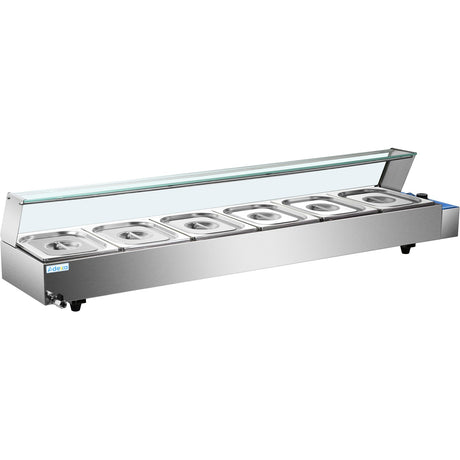 Commercial Bain Marie With Glass Top Sneeze Guard 6x Gn1/2 | Hbm26