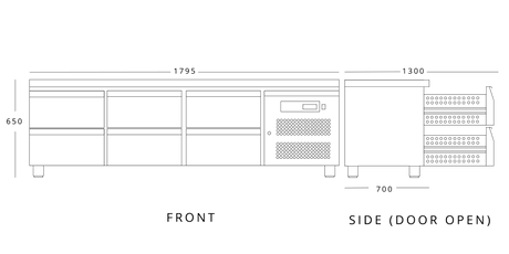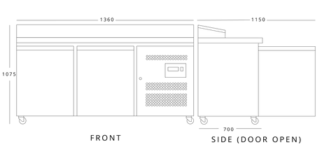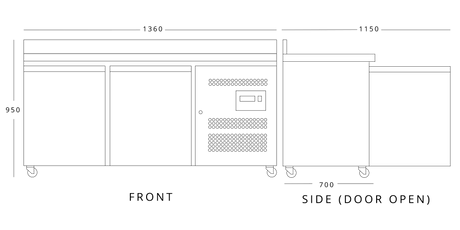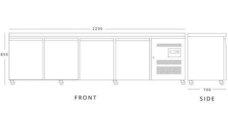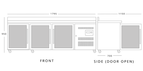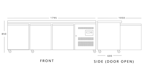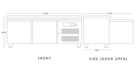 Triple Hinged Door Counter Refrigerator Without Upstand