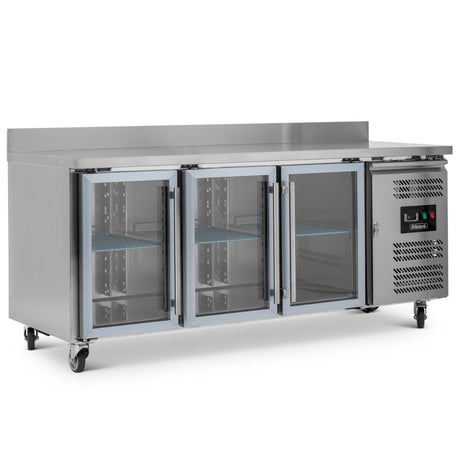 Triple Hinged Glass Door Counter Refrigerator With Upstand