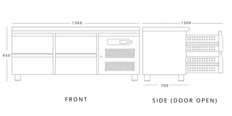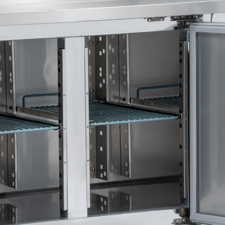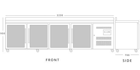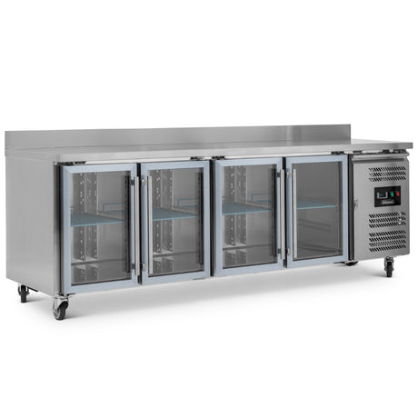 Four Hinged Glass Door Counter Refrigerator With Upstand