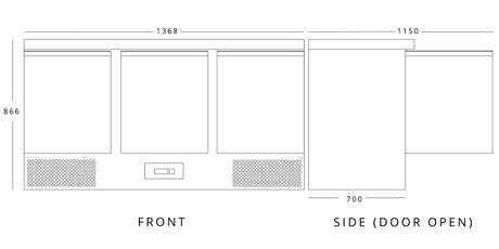 Compact Triple Door Counter Refrigerator With Granite Worktop