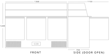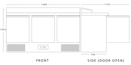 Triple Hinged Door Pizza Prep Counter With Granite Worktop