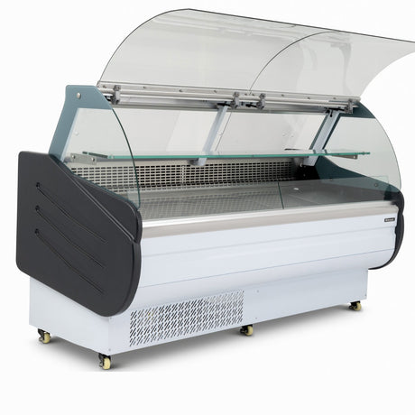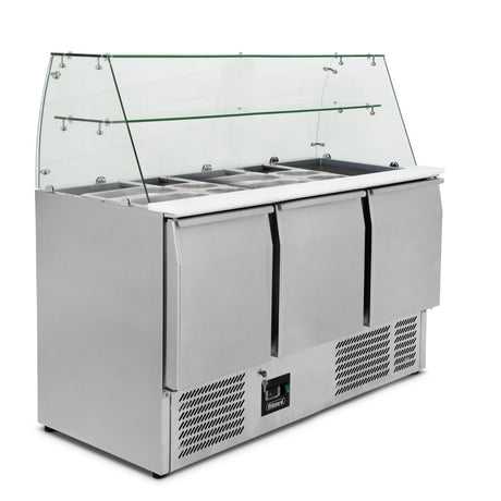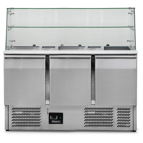 Double Hinged Door Refrigerated Prep Counter With Glass Canopy