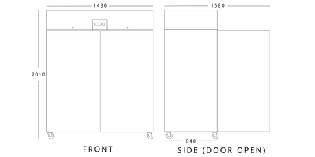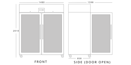 Upright Double Hinged Glass Door Gastronorm Refrigerator