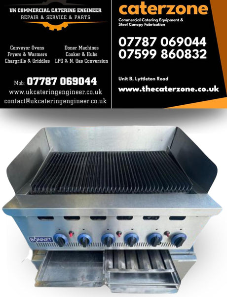- Sold out£2,972.05 offCaterzone Bonnet 6 Burner Chargrill Natural Gas Peri Peri Grill with Low Bench Fridge £2,327.95£5,300.00Unit price /Unavailable