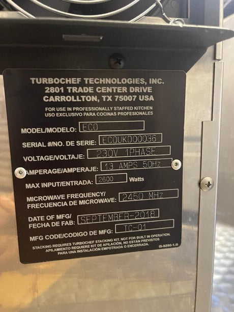 - Sold outNew arrivalCaterzone TurboChef Eco 2018 Oven Digital Screen Single Phase 2600W Excellent Condition £2,612.95Unit price /Unavailable