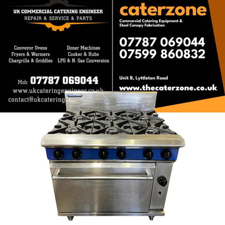 - Caterzone - 6 Burner Cooker Gas Range with Oven Natural Gas or LPG 92x86x105cm Very low stock (1 unit)£2,257.95- £3,132.00Unit price /Unavailable