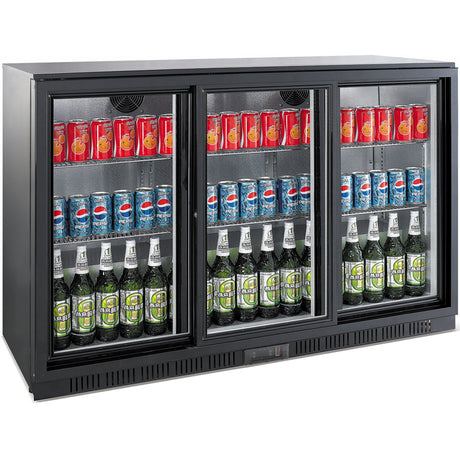 Back Bar Cooler 3 Sliding Doors 300 Litres Black | Bc03 Ps