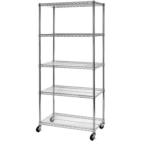 Commercial 5 Tier Shelving Unit Chrome Wire With Wheels 1250kg 1500x450x1900mm | Cja1344