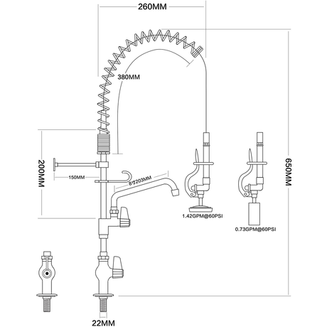 Pre Rinse Spray Unit Deck Mount Double Inlet Height 1000mm Stainless Steel | Eq2801 A