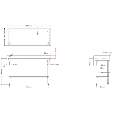 Commercial Work Table Stainless Steel Rear Upstand Bottom Shelf 1500x600x900mm | Wtg600 X150050 R
