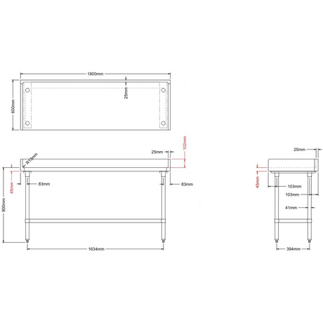 Commercial Work Table Stainless Steel Rear Upstand Bottom Shelf 1800x600x900mm | Wtg600 X180050 R