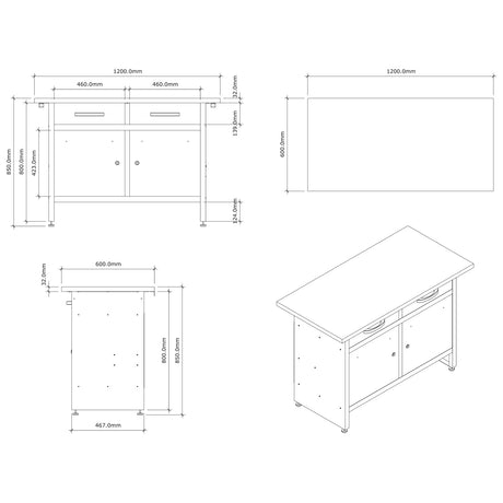 Professional Grey And Black Workshop Drawer Workbench With 30mm Wooden Desktop 600x600x850mm | Tc005