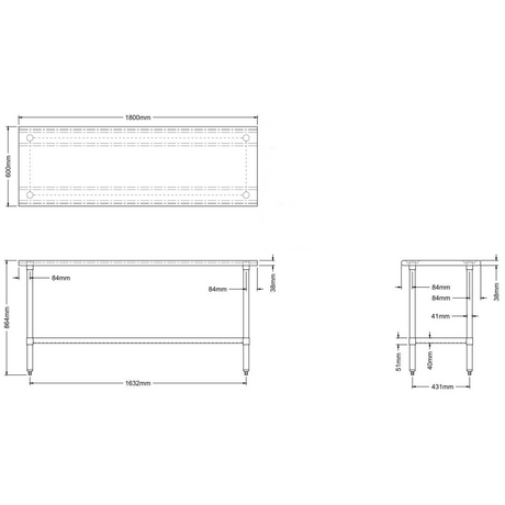 Commercial Work Table Stainless Steel Bottom Shelf 1800x600x900mm | Wtg600 X1800