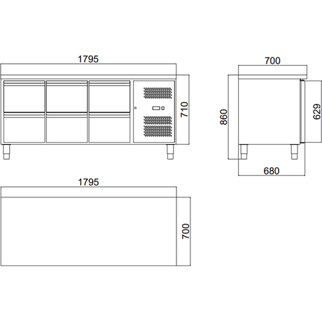 Commercial Refrigerated Counter 1 Door 4 Drawers Depth 700mm | 4 Drg31 V