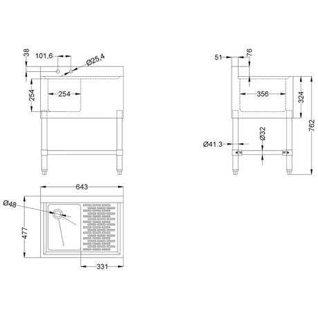 Commercial Bar Sink 1 Bowl Right 643x477x838mm | Bar1 B24 L