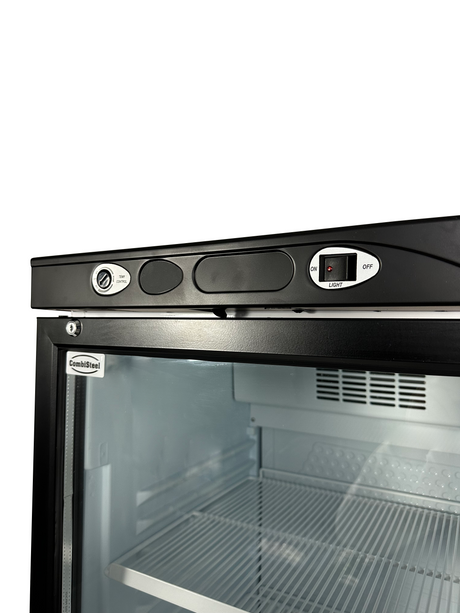 Sleek Black Combisteel 382L Single Glass Door Refrigerator - No Light Box Feature
