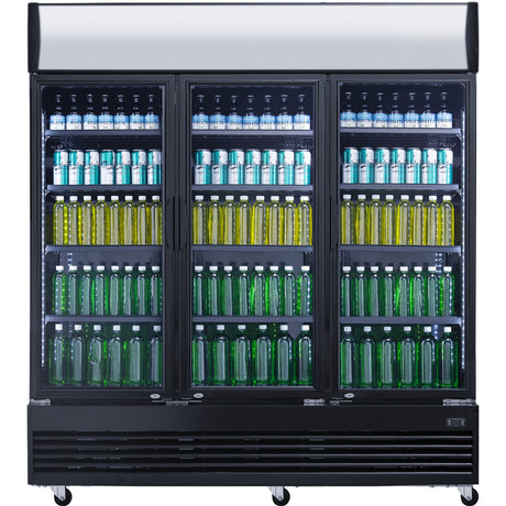 Commercial Bottle Cooler 1300 Litres Ventilated Cooling 3 Hinged Doors Black | Lg1300 Bfblack