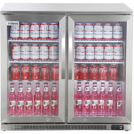 Commercial Back Bar Cooler 191 Litres 2 Hinged Glass Doors Stainless Steel 1000x650x960mm | Bbc2 Hs