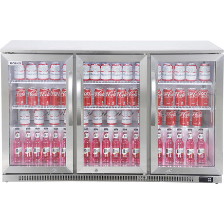 Commercial Back Bar Cooler 295 Litres 3 Hinged Glass Doors Stainless Steel 1440x650x960mm | Bbc3 Hs