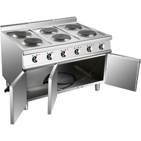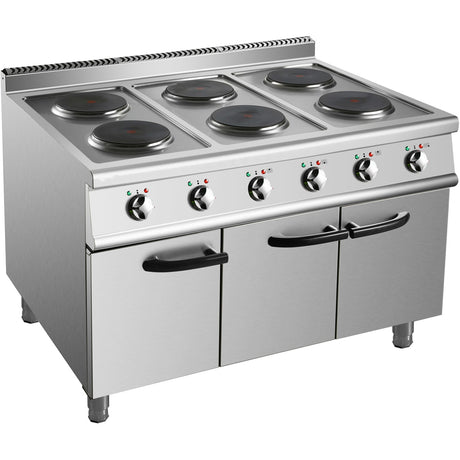 Commercial Electric Cooker 6 Burners With Cabinet Base 6x2k W 700mm Depth | Hrq762