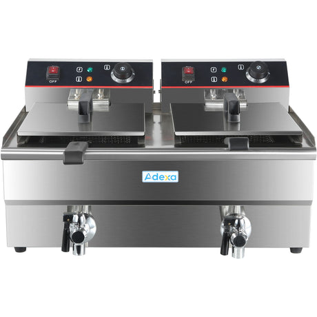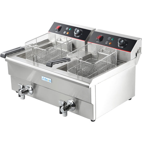 Commercial Fryer Double Electric 2x16 Litre 10k W Countertop Drainage Tap | Hef162 V