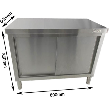 Commercial Stainless Steel Sliding Door Work Table Cabinet 800x600x850mm | Qnh312
