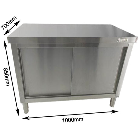 Commercial Stainless Steel Sliding Door Work Table Cabinet 1000x700x850mm | Qnh324