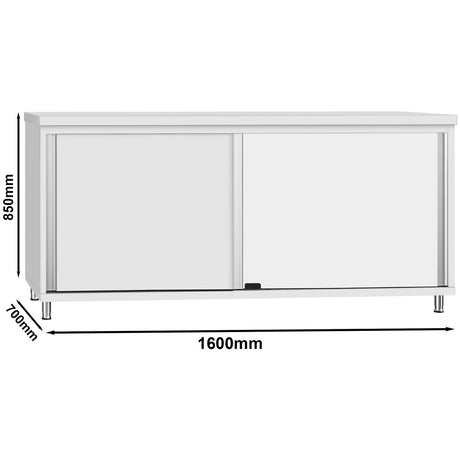 Commercial Stainless Steel Sliding Door Work Table Cabinet 1600x700x850mm | Qnh330