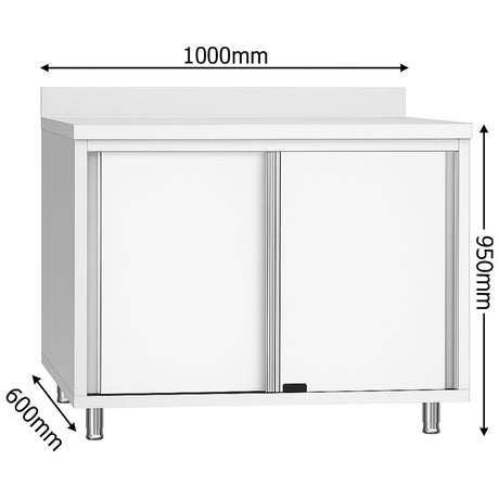 Commercial Stainless Steel Sliding Door Work Table Cabinet 1000x600x850mm | Qnh314