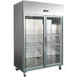 1300lt Commercial Freezer Stainless Steel Upright Cabinet Twin Glass Door Gn2/1 Ventilated Cooling | F1400 Vglass