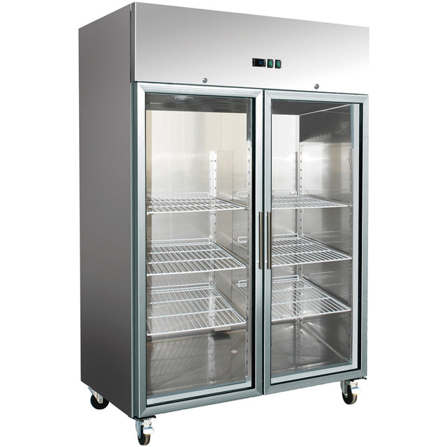 1300lt Commercial Freezer Stainless Steel Upright Cabinet Twin Glass Door Gn2/1 Ventilated Cooling | F1400 Vglass is backordered and will ship as soon as it is back in stock.