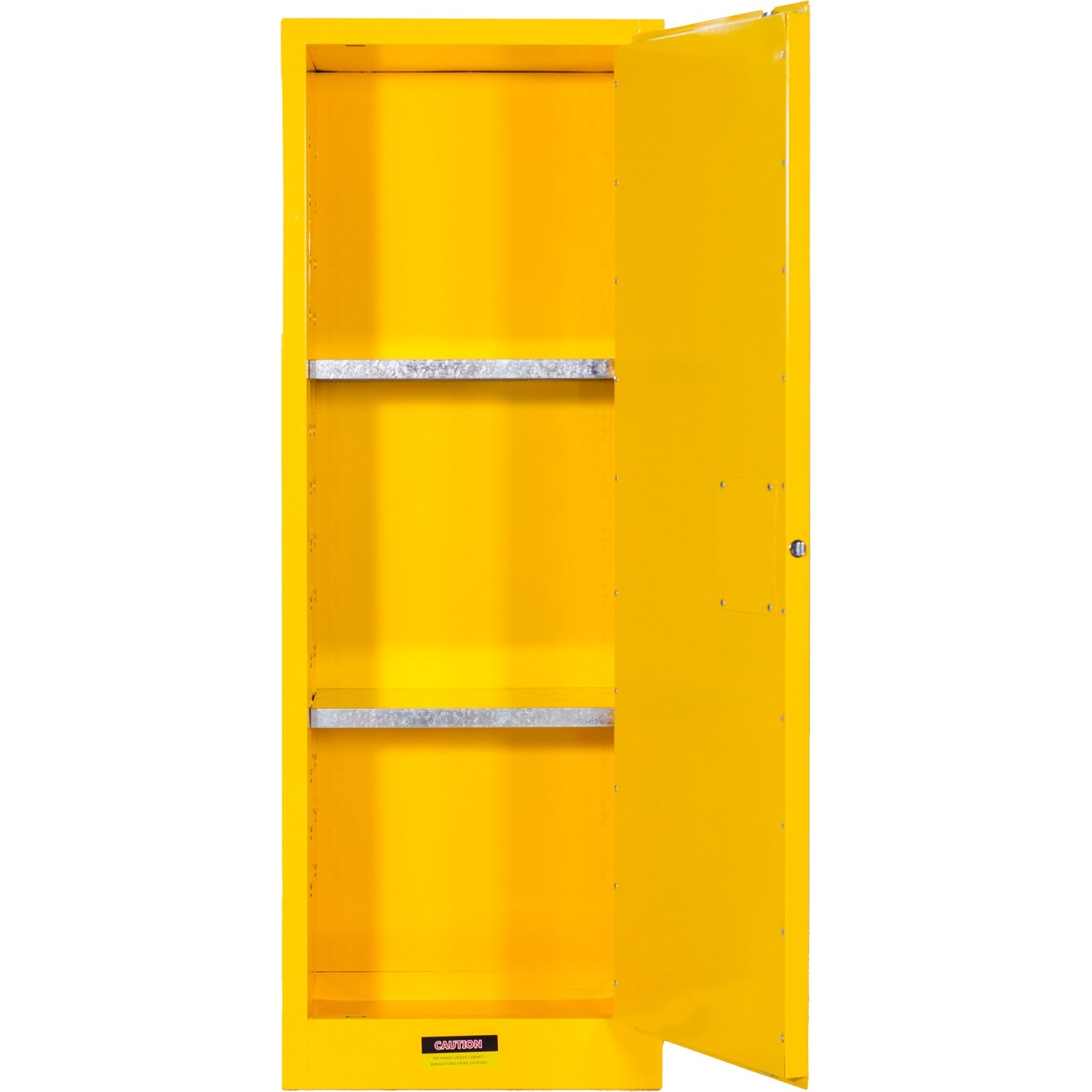 The BY22 safety cabinet is designed for the secure storage of flammable liquids and chemicals in laboratories, workshops, and industrial facilities. Built from high-quality steel with a durable yellow powder-coated finish, it ensures maximum visibility and OSHA-compliant safety. The single-door design with lockable handle provides restricted access, while an adjustable galvanized shelf allows flexible storage.