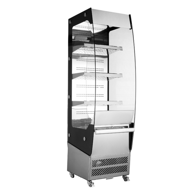 The Hamoki Commercial Open Food Display Cooler with perforated transparent blind is a versatile, slimline, and stylish appliance for any food service establishment, such as restaurants, delis, cafeterias, bakeries, supermarkets, or even hotels.