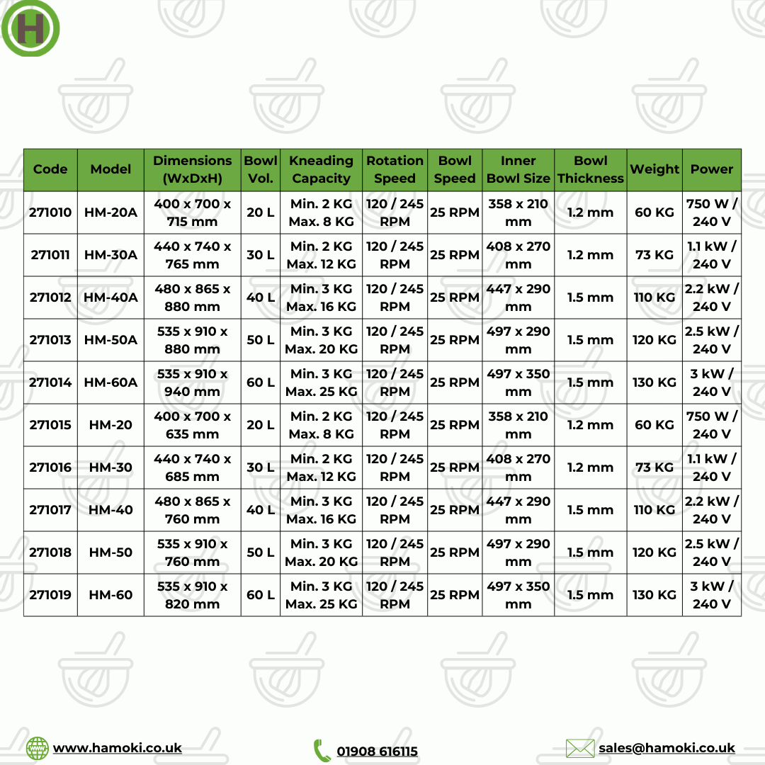 The Hamoki Spiral Mixers are robust and versatile kitchen appliances, designed to meet the demanding needs of commercial kitchens and bakeries.