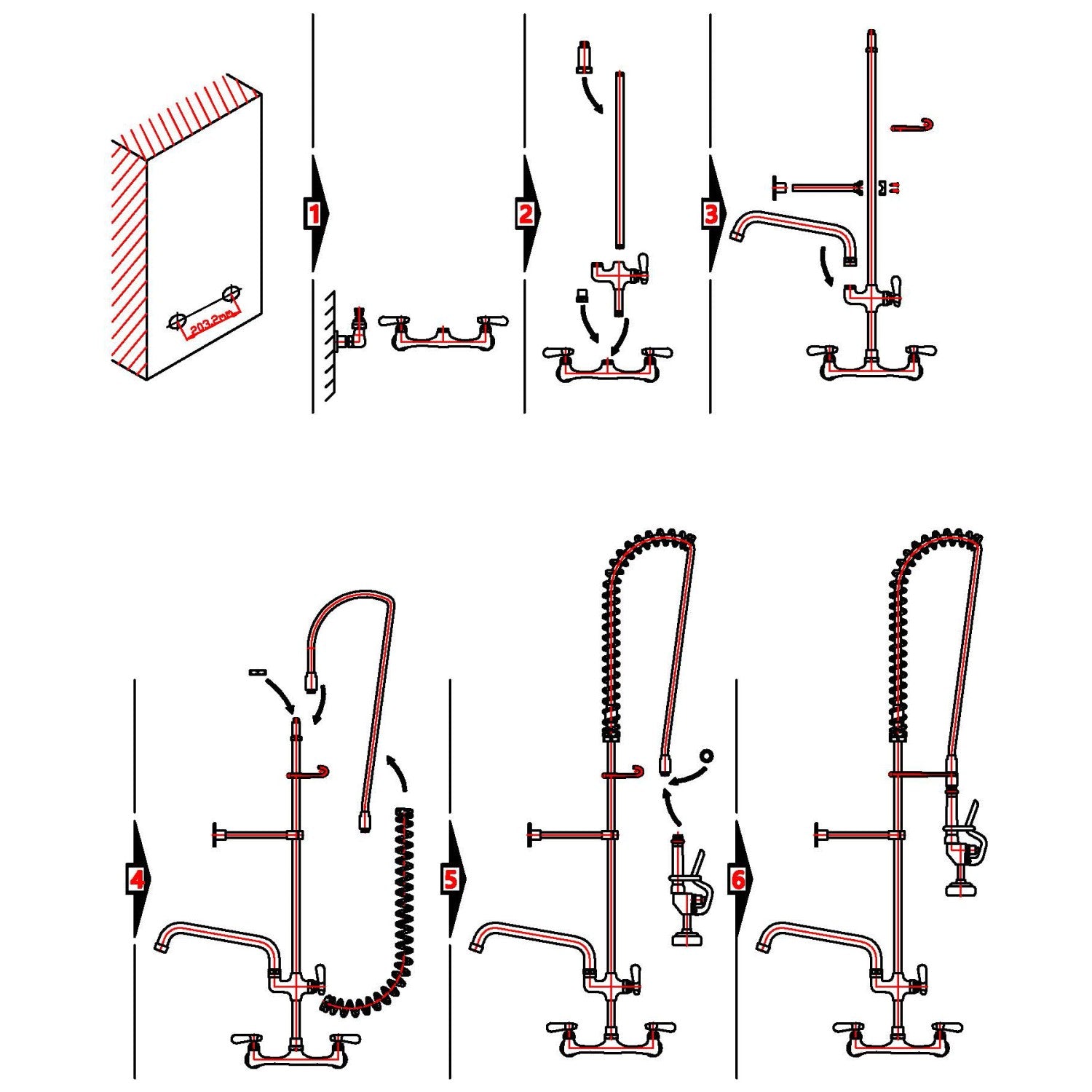 8&Quot; Center Wall Mounted Pre Rinse Unit With Add On Faucet &Amp; 18&Quot; Riser &Amp; 44&Quot; Hose &Amp; 12&Quot; Swing Spout | Bxf248 is backordered and will ship as soon as it is back in stock.