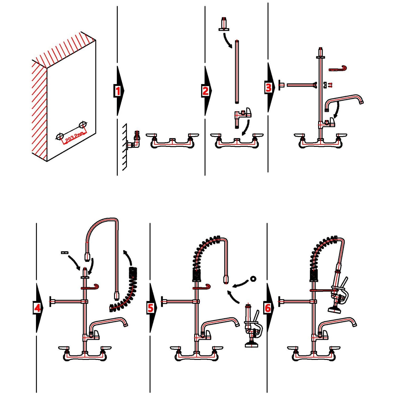 8&Quot; Wall Mounted Pre Rinse Faucet With Add On 6&Quot; Swing Spout &Amp; 22&Quot; Hose &Amp; Spray Valve | Bxf240 is backordered and will ship as soon as it is back in stock.
