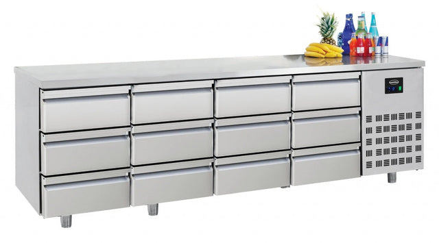 Discover the Ultimate 12-Drawer Stainless Steel Counter Fridge - 632L Capacity, Perfect for Gastronorm Storage