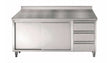 - Large capacity stainless steel cupboard with sliding doors, drawers and backsplash making them ideal for use in busy catering kitchens. Also very suitable for kitchens with limited space.