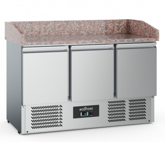 Revitalize Your Kitchen with the Combisteel Ecofrost 3-Door Refrigerated Pizza Prep Counter - 368L Capacity & Elegant Marble Top