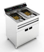 The Combisteel twin tank electric free standing fryer has been designed with the busy caterer in mind. Perfect for frying large quantities of chips, chicken, seafood and many other foods, the Combisteel fryer features heavy duty stainless steel construction for durability and a large capacity cool zone to prevent oil degradation. Each tank has independent temperature control, providing versatility and precision which is vital in today's professional kitchen.