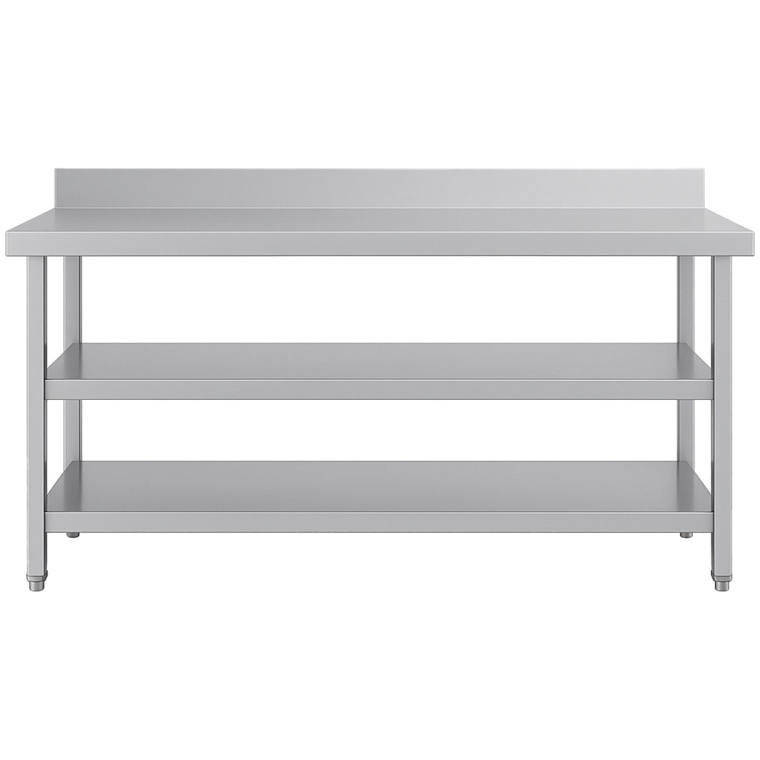 Commercial 3 Tier Stainless Steel Work Table With Undershelves And Backsplash 1800x600x850mm | Qnh1150 is backordered and will ship as soon as it is back in stock.