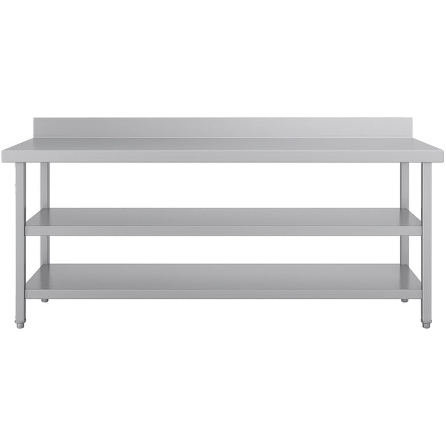 Commercial 3 Tier Stainless Steel Work Table With Undershelves And Backsplash 2100x600x850mm | Qnh1152 is backordered and will ship as soon as it is back in stock.