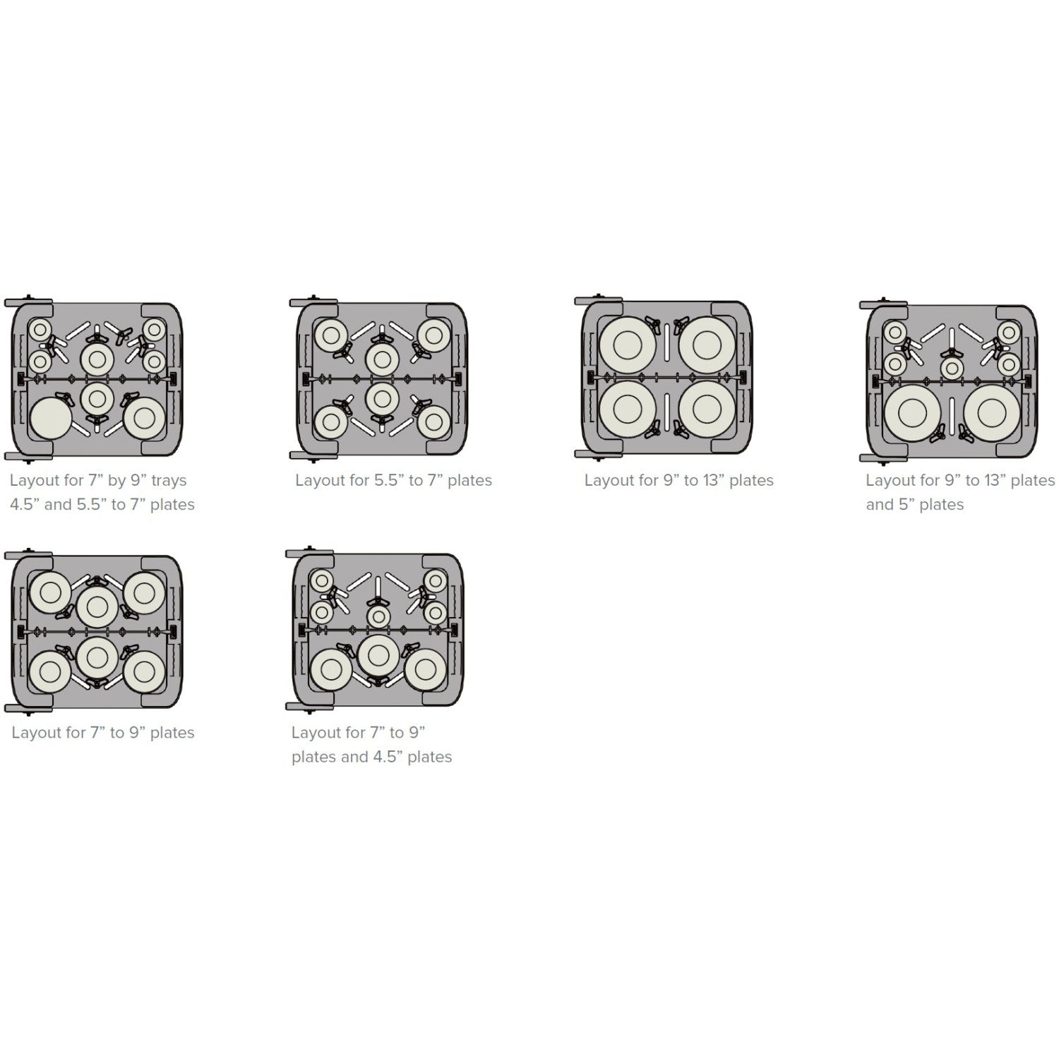 - Capacity: 240 plates with adjustable compartments for various plate diameters