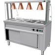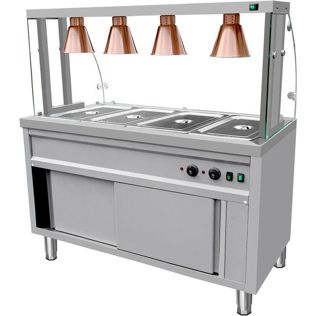 Commercial Bain Marie With Cabinet 4×Gn1/1 Curved Glass Display And 4 Heat Lamps 1470x700x1450mm | Vbmgn4 Aen