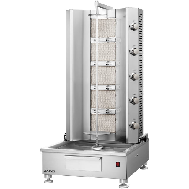 The Adexa KTQ1250 Gas Shawarma Machine is designed for professional kitchens, offering high-performance grilling with consistent results. Built from durable stainless steel, it ensures reliability, hygiene, and ease of cleaning. With five powerful burners and natural gas operation, it provides efficient cooking and adjustable heat control, perfect for restaurants, takeaways, and catering businesses.