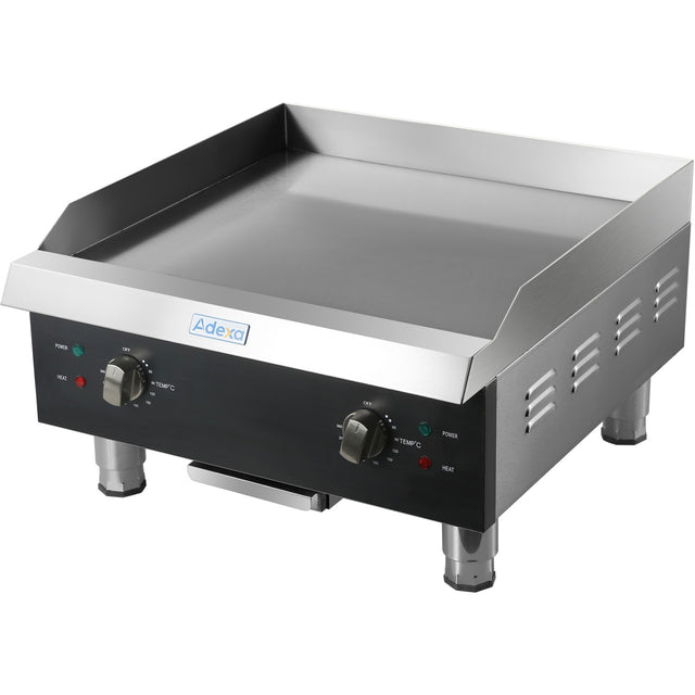 Powerful and reliable, this professional steel griddle features a generously sized steel cooking surface that is all smooth, perfect for breakfast, lunch or dinner services. The heavy duty elements ensure a rapid heat up and an even spread of heat across the wide griddle surface. With simple dial thermostat control, the restaurant griddle is incredibly easy to use, clean and maintain. This catering fry top is an incredible bargain at the current discount sale price.