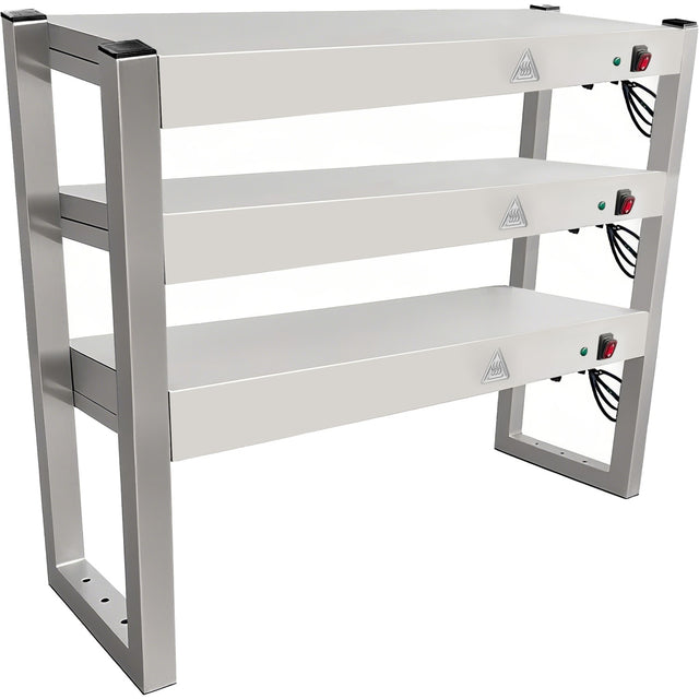 This three-tier heated gantry is ideal for keeping food warm and ready to serve in professional catering environments. With a robust stainless steel construction and two high-powered 300W heating bulbs per tier, it delivers even heat distribution across the serving area. The compact yet spacious design makes it perfect for use on countertops or pass-throughs in restaurants, hotels, and buffets.